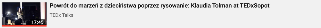 …w którym poza walką ze spadającym z mojej paszczy mikrofonem i moim kazachskim akcentem języka lengłidż jest zachęta to rysowania swoich planów, bo „it’s half done when you’ve drawn it”, co udowadniam moim własnym przykładem, bo sama sobie narysowałam, że wystąpię na tym TEDksie, o czym zresztą opowiadam na tym właśnie TEDksie, cóż za incepcja, drodzy państwo, a tak naprawdę to nie incepcja, bo nie ma czegoś takiego, ale, uwaga, wątek edukacji ogólnej: rekurencja. Wymarzyłam sobie, że wystąpię na TEDksie, narysowałam to sobie i wystąpiłam. I opowiedziałam o tym, że narysowałam, że wystąpię. I wystąpiłam. I opowiedziałam. (…nadążacie?)